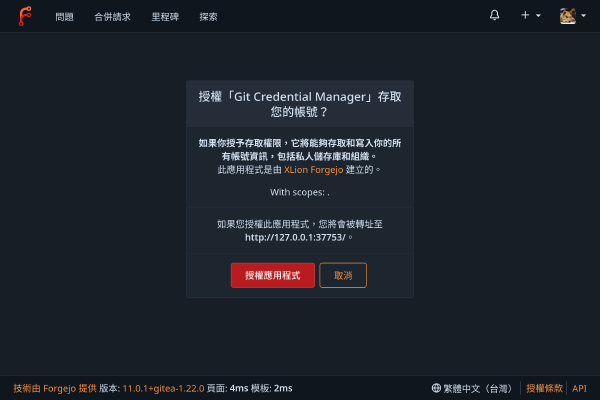 在 Fedora 用 git-credential-manager2025年6月2日·435 字·1 分鐘Linux Fedora Git Terra-Repo我很喜歡那種短期 Token 的想法,而不是每個要連線的設備都要去單獨創 Token,這東西在 Windows 是內建的,估計是因為是微軟維護的緣故,但 Linux 沒有內建,都得自己設定。其實 GitHub, GitLab 我是一直都用 gh 跟 glab 當憑證提供者,但我在 Windows 上與我的 Forgejo 互動時,跳出了瀏覽器請求授權